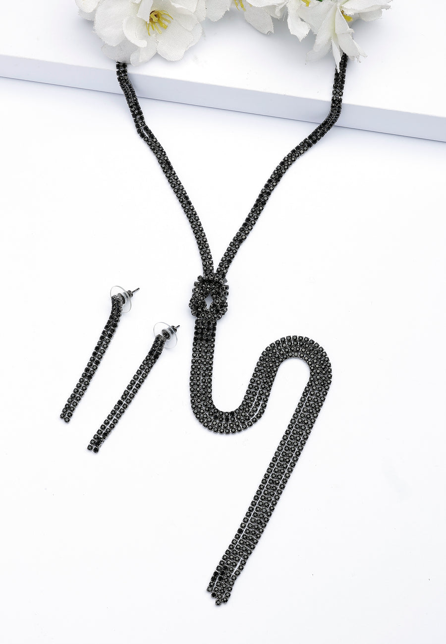 Make a bold statement with this Black Gleaming Necklace and Earrings Set, a perfect blend of mystery and elegance. Featuring a sleek black finish with a radiant shine. Crafted with...