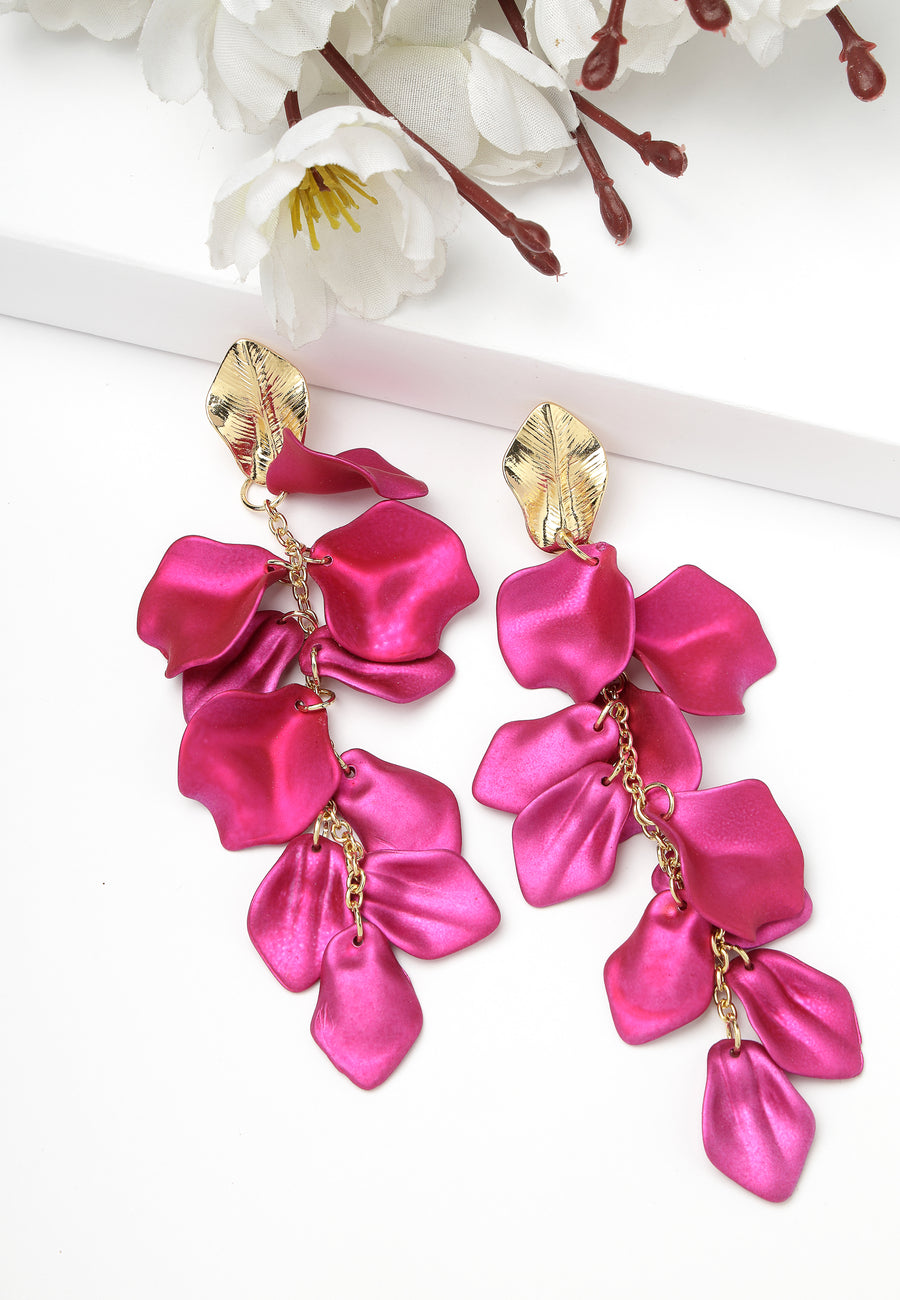 These gorgeous dark pink drop earrings in the form of cascading leaves will adorn you with the vivid hues of nature's palette. Create a fresh and feminine look by pairing...