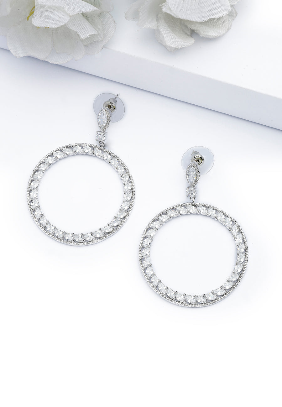 These silver-toned earrings have a graceful, intertwined design encrusted with sparkling stones, giving them a luxurious and refined look. Their elegant shape makes them a perfect accessory for formal occasions...