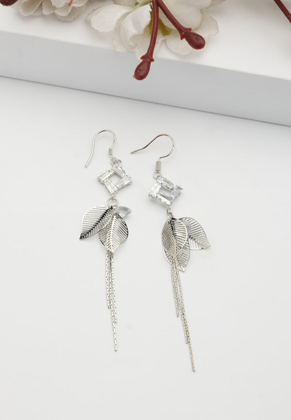 Graceful leaves, embellished with sparkling crystals, flow elegantly to create a mesmerizing and enchanting appearance. These earrings make a bold statement, radiating sophistication and charm, and are perfect for bringing...