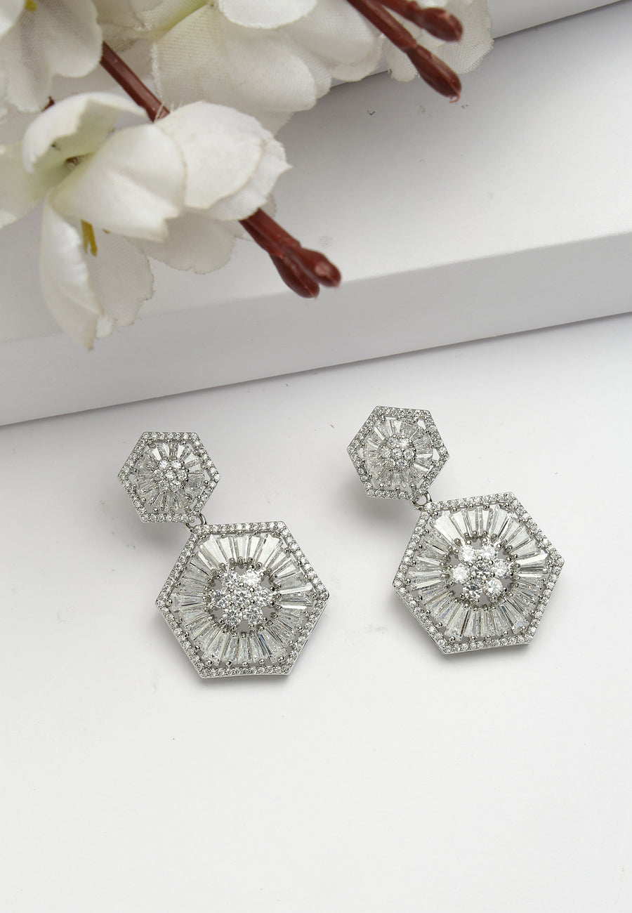 De moderigtige blomsterøreringe i sølv, prydet med glitrende zirconia-sten for et udsøgt strejf af glamour. Zirconia-stenene tilføjer en strålende gnist til ensemblet og løfter dit look med deres blændende glans....