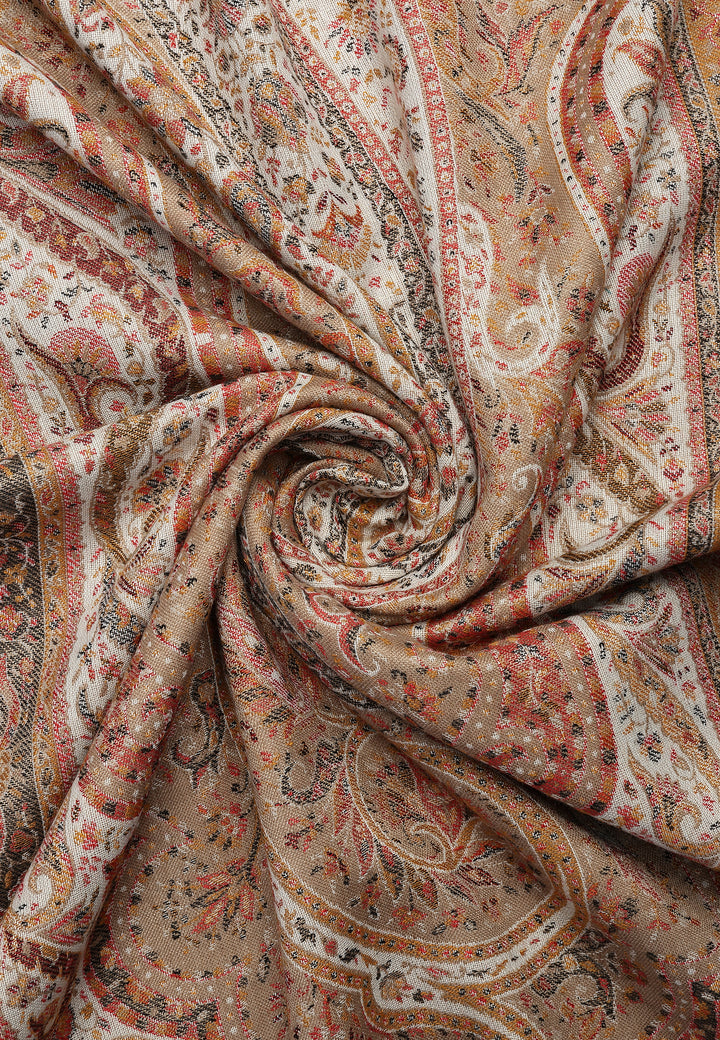 Smukke Jamawar-designs på et blødt imiteret pashmina-stof og traditionelt kunstværk. Populær siden Mughal-æraen. Denne traditionelle stole i Kashmiri-stil har indviklet design og kvalitet.