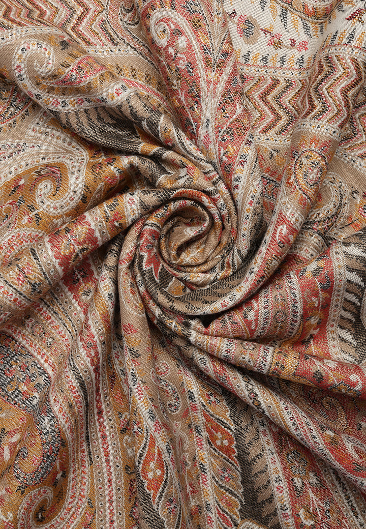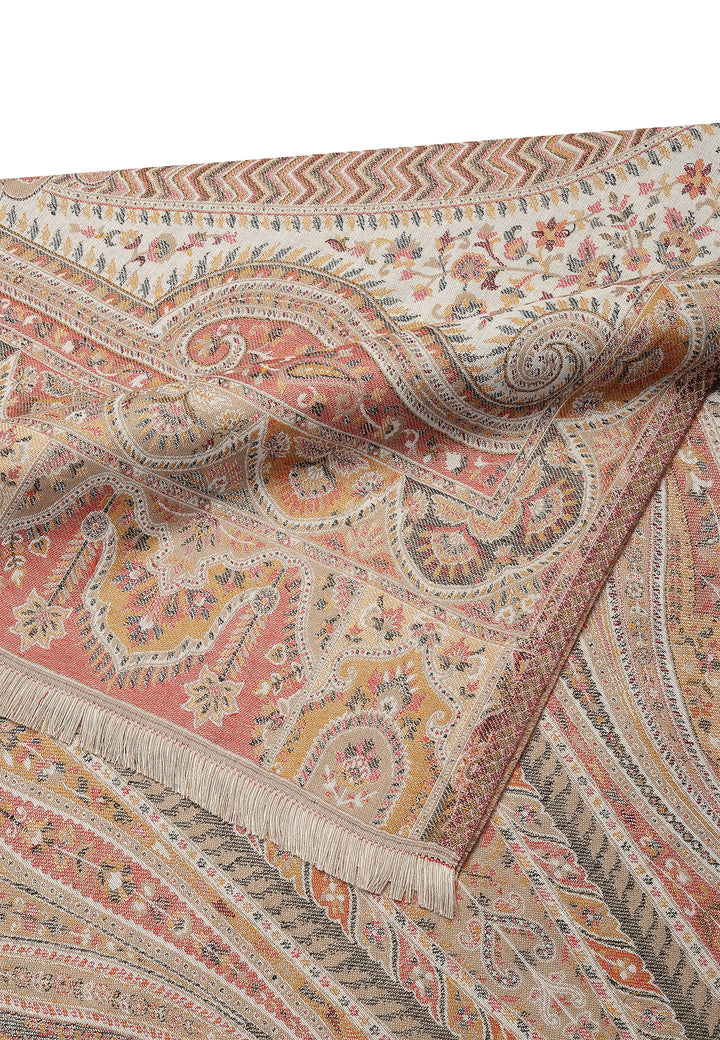 Smukke Jamawar-designs på et blødt imiteret pashmina-stof og traditionelt kunstværk. Populær siden Mughal-æraen. Denne traditionelle stole i Kashmiri-stil har indviklet design og kvalitet.