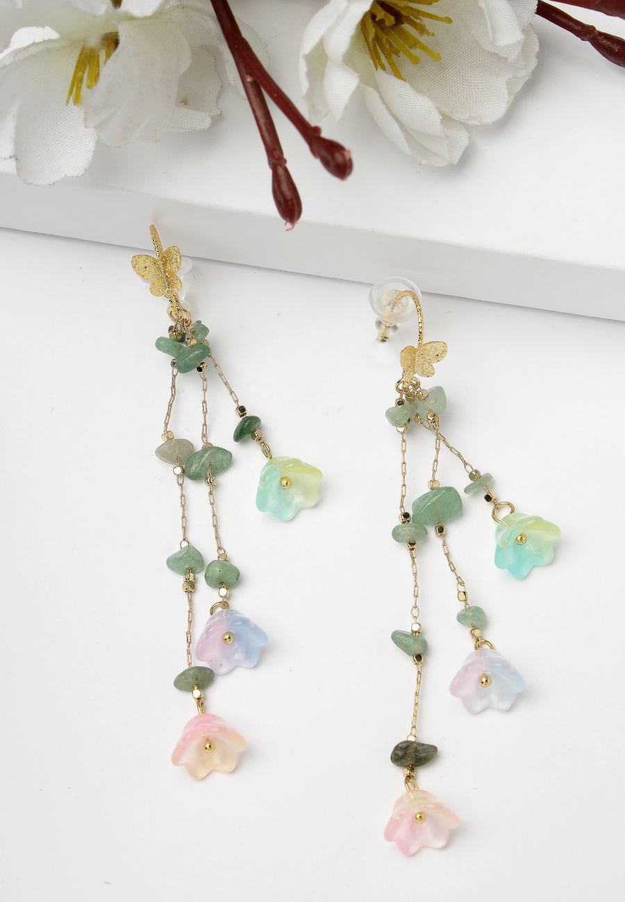 Lange grüne Blumenohrringe