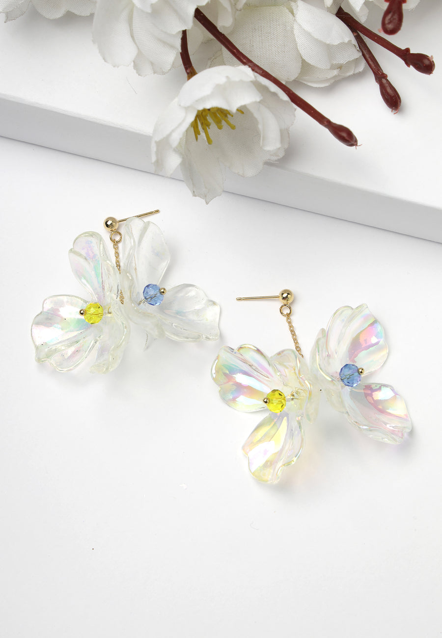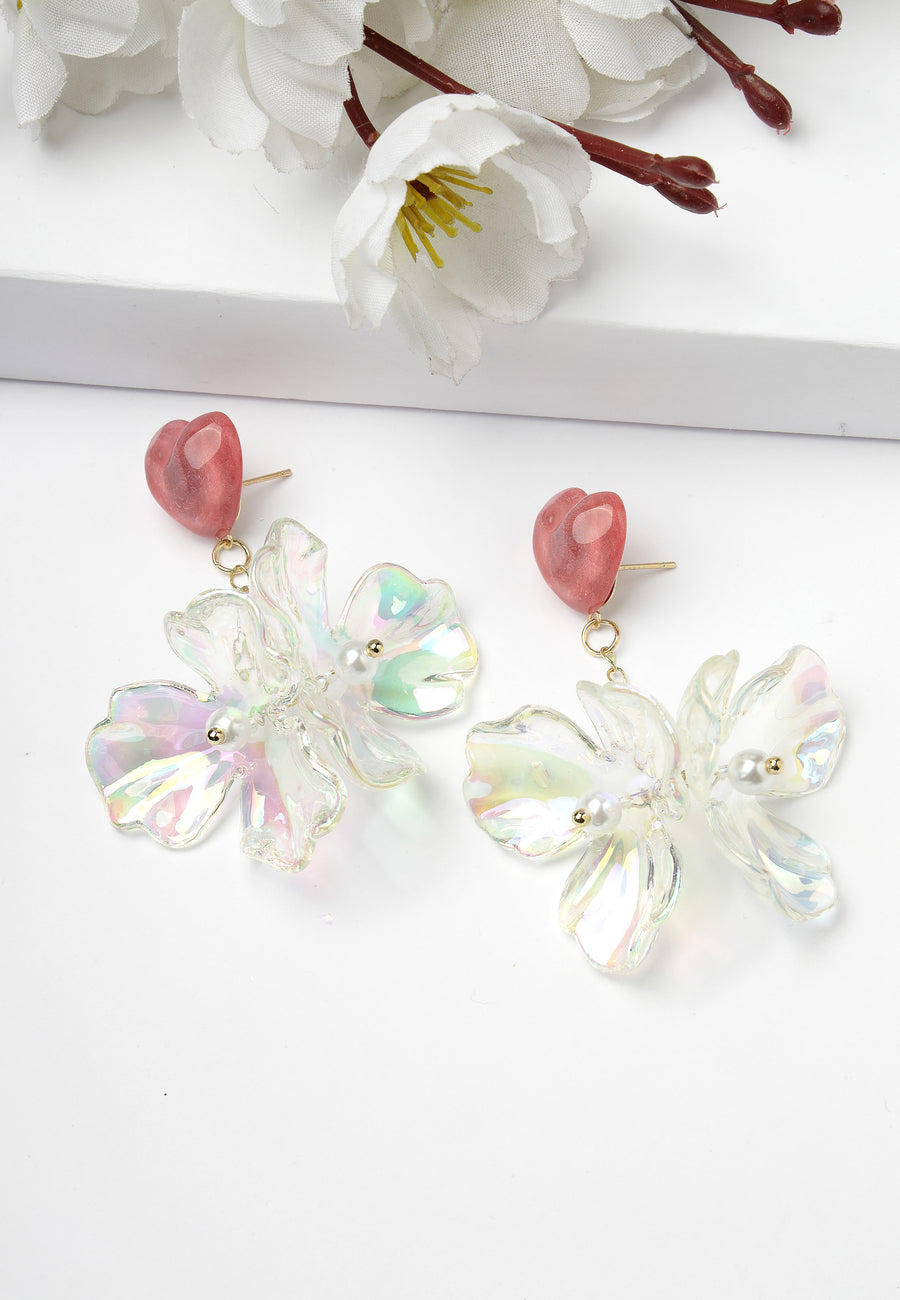 Lange weiße Blumenohrringe