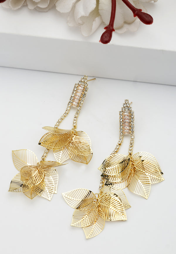 Luxuriöse lange Statement-Ohrringe mit Rosenblättern