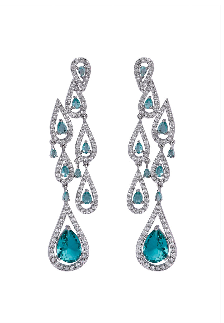 Die Diva Raindrop Dangle Ohrringe sind eine wunderschöne Mischung aus Eleganz. Diese Ohrringe verfügen über mintgrüne Zirkonia-Steine, die in einer zarten Tropfenform geschliffen sind. Diese Ohrringe stammen aus der Diva-Kollektion. Der Dangle-Stil lässt die Steine mit jedem Schritt sanft bewegen, was Ihrem Look ein dynamisches und auffälliges Element verleiht. Die ruhige mintgrüne Farbe ist vielseitig und kann verschiedene Outfits ergänzen, von Sommerkleidern bis hin zu Abendkleidern. Die Kombination aus der kühlen grünen Farbe und dem Funkeln der Zirkonia schafft einen Look, der sowohl raffiniert als auch verspielt ist. Diese Ohrringe sind ein perfektes Geschenk für jemanden Besonderen oder eine wunderbare Belohnung für sich selbst.