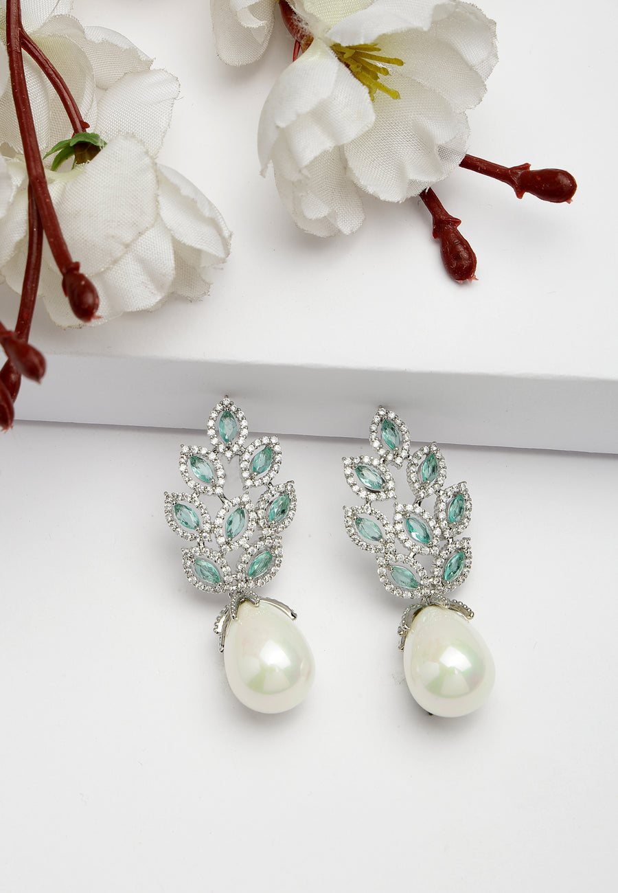 Pendientes colgantes con forma de hoja de sauce y circonita cúbica