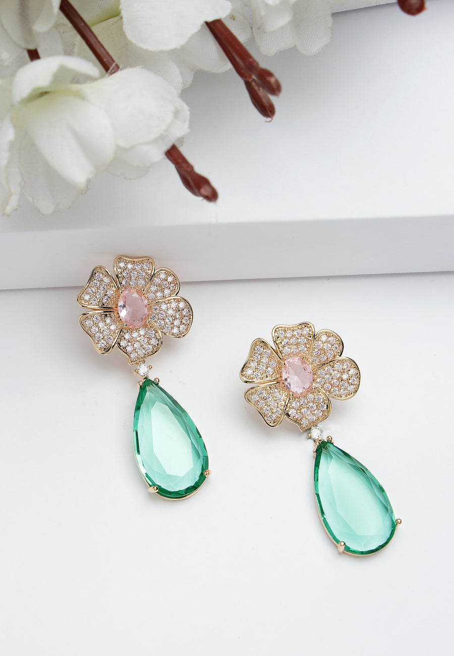Los elegantes aretes colgantes florales de circonita cúbica son un accesorio impresionante y sofisticado que irradia belleza y gracia atemporales. El estilo gota de los pendientes alarga el escote, creando...
