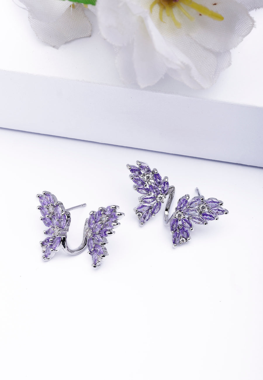 Estos pendientes en forma de escalera presentan una delicada disposición de piedras de corte marquesa en un profundo color púrpura, imitando los intrincados patrones de las alas de mariposa. Pequeños...