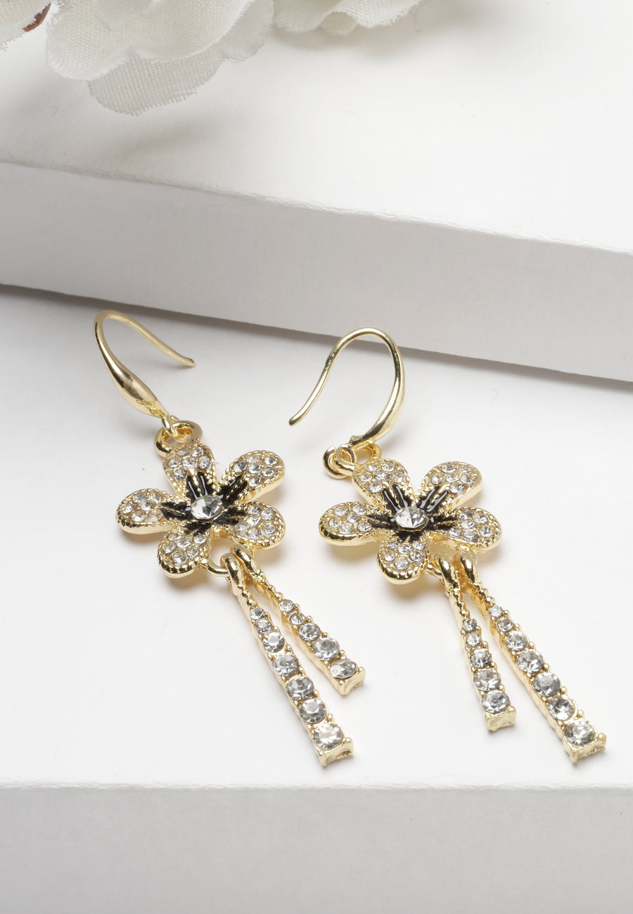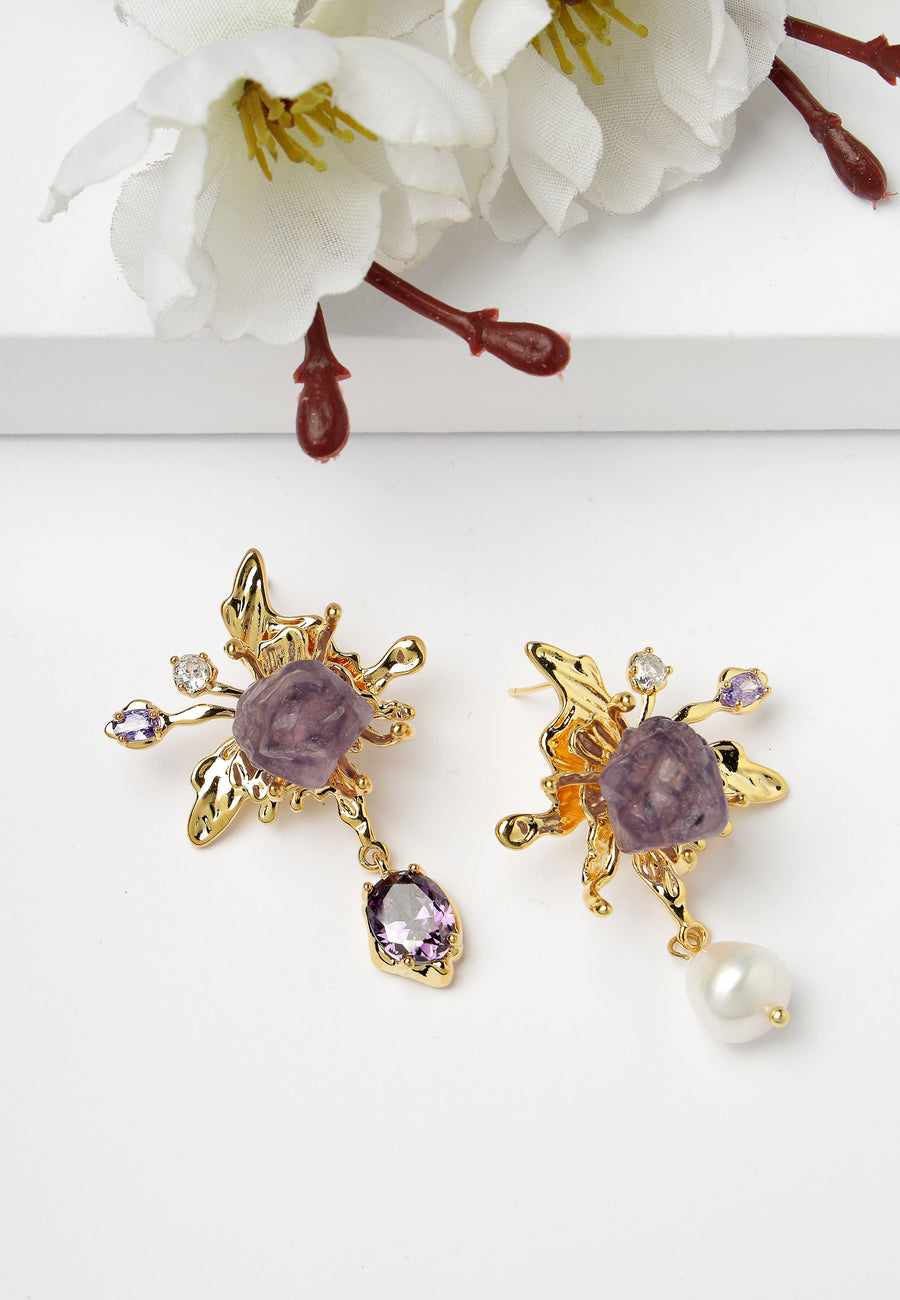 Nämä epäsymmetriset korvakorut tarjoavat leikkisän mutta elegantin epäsymmetrian. Toinen korvakoru sisältää herkän, kristalleilla koristellun kukka-stud-korun, kun taas toinen on pitkä, lineaarinen kaskadi säihkivistä kukkamuotoista. Eri pituudet ja yhtenäinen kukkateema luovat...