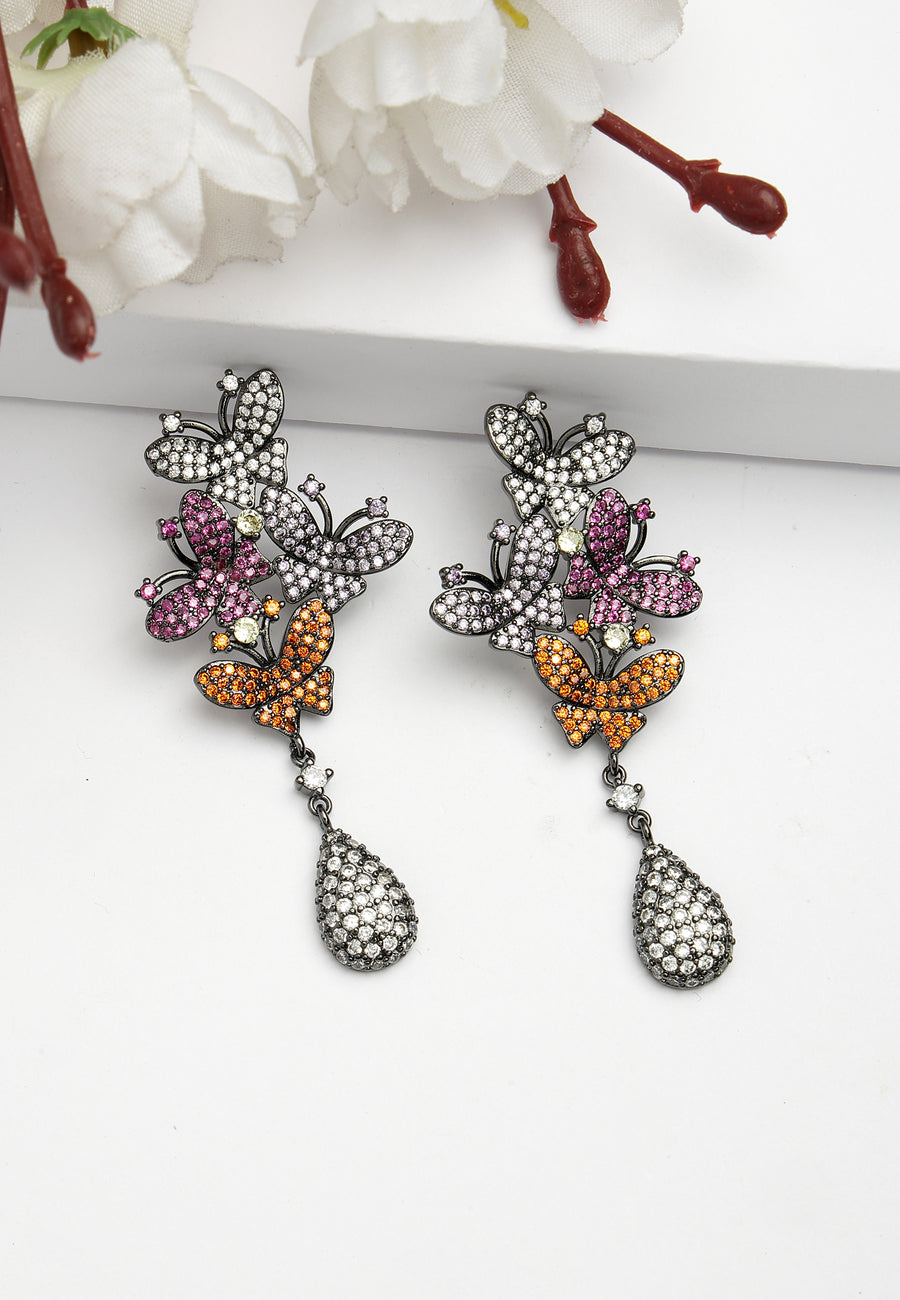 Nämä moniväriset perhoskorvakorut ovat oikeita ja eloisia asusteita, jotka lisäävät leikkisää silausta mihin tahansa asuun. Nämä korvakorut on koristeltu perhosilla oranssin, violetin, vaaleanpunaisen ja hopean sävyissä, ja ne ovat värien...