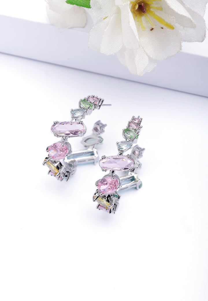 Nämä leikkisät renkaankorvakorut esittelevät leikkisää kokoelmaa pastellivärisiä kiviä, jotka on ryhmitelty teksturoidun metallikehyksen ympärille. Epäsäännölliset muodot ja vaihtelevat värit luovat viehättävän, boheemi-inspiroituneen ilmeen.