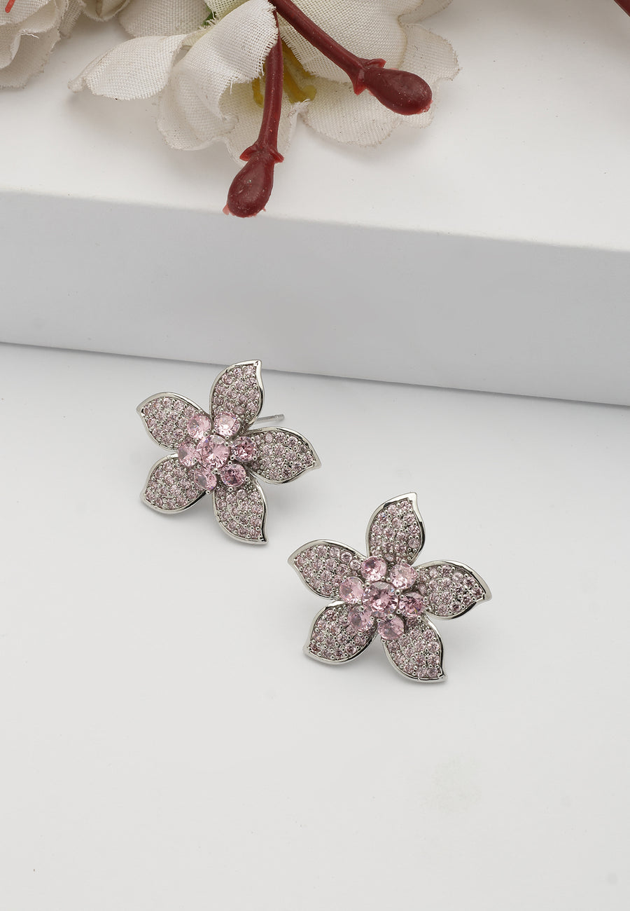 Boucles d'oreilles en fleurs scintillantes rose clair