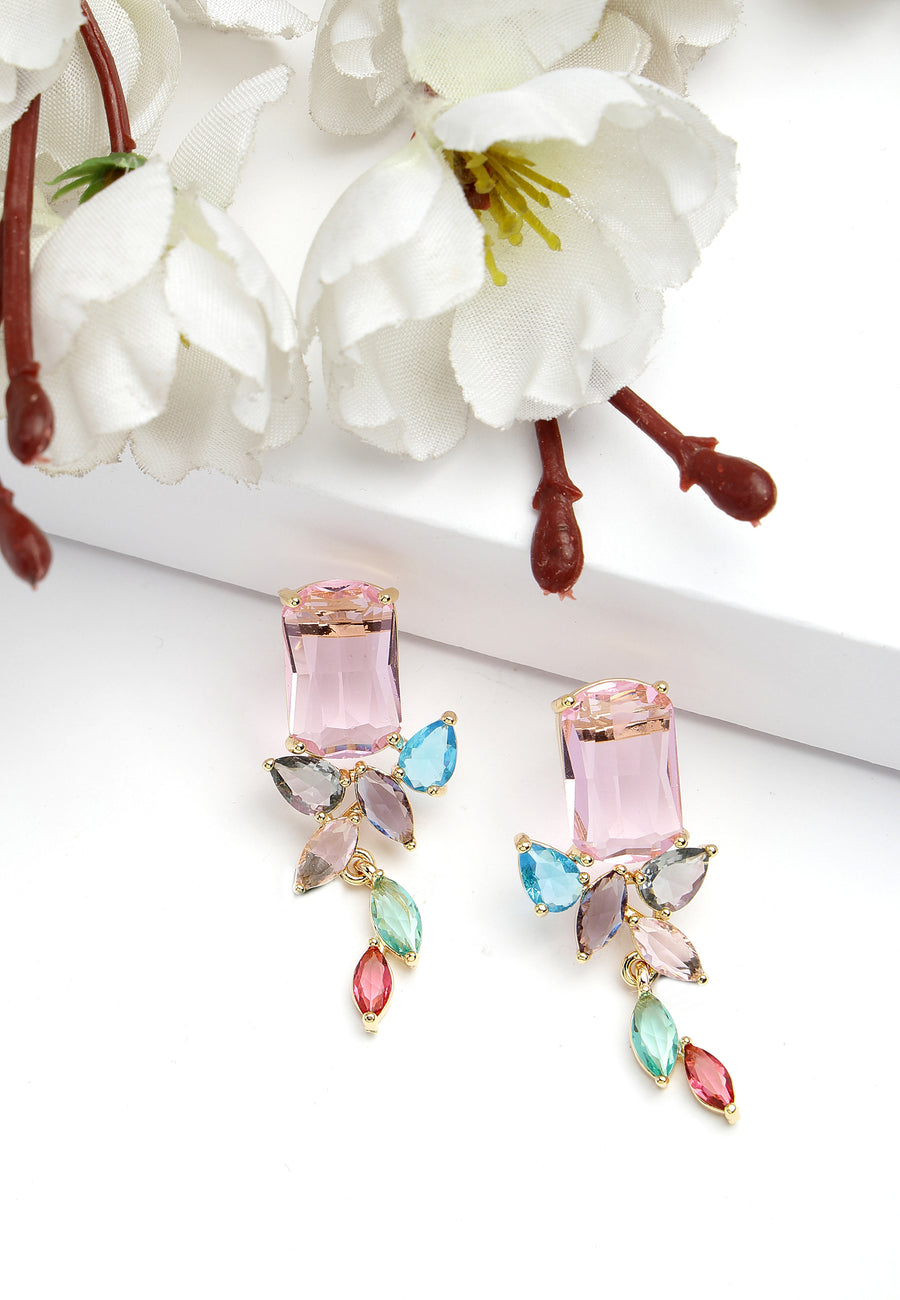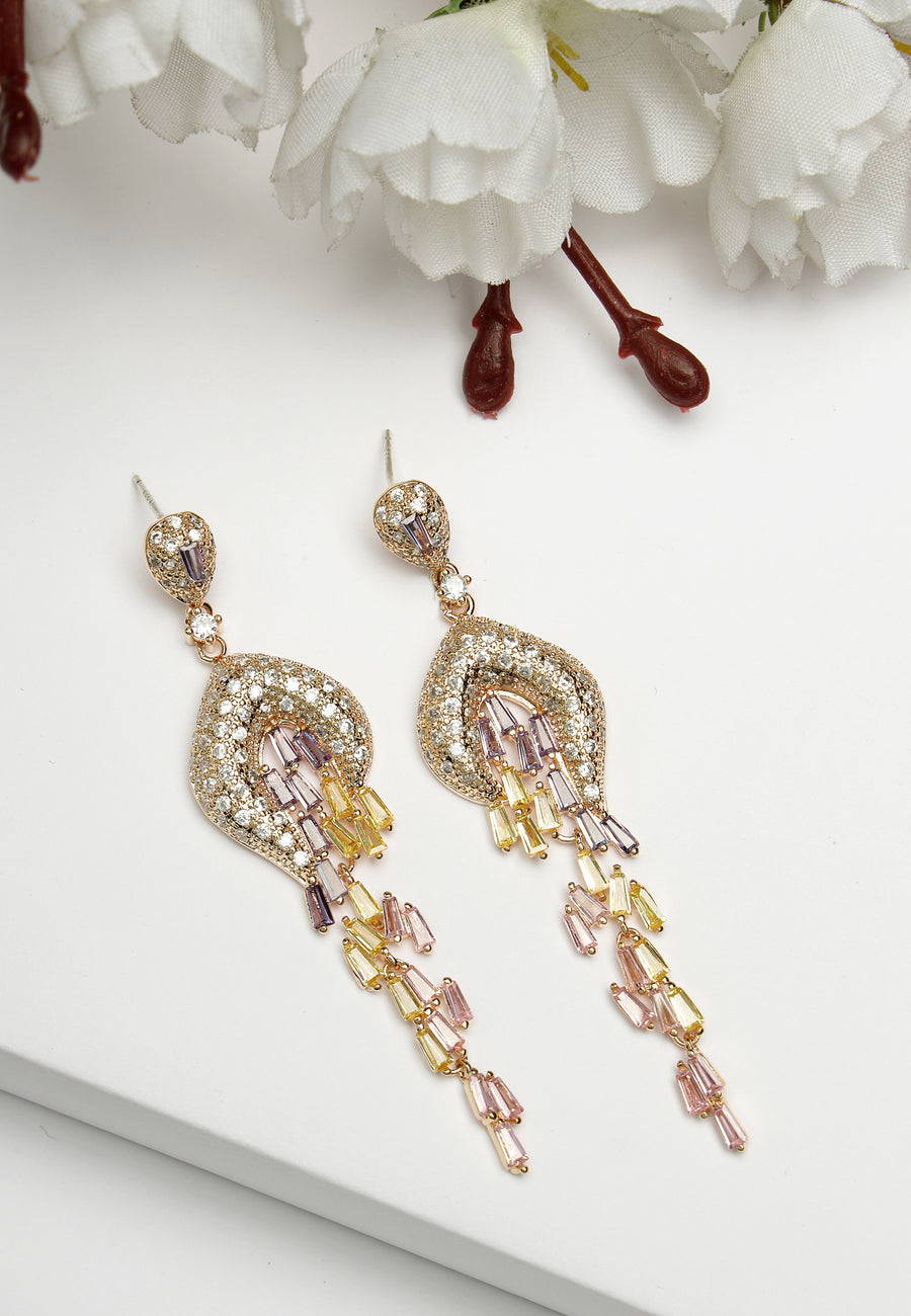 Les boucles d'oreilles pendantes Royal Cubic Zirconia en argent avec des pierres multicolores au coin de la goutte sont un accessoire royal et enchanteur qui respire le glamour et la...