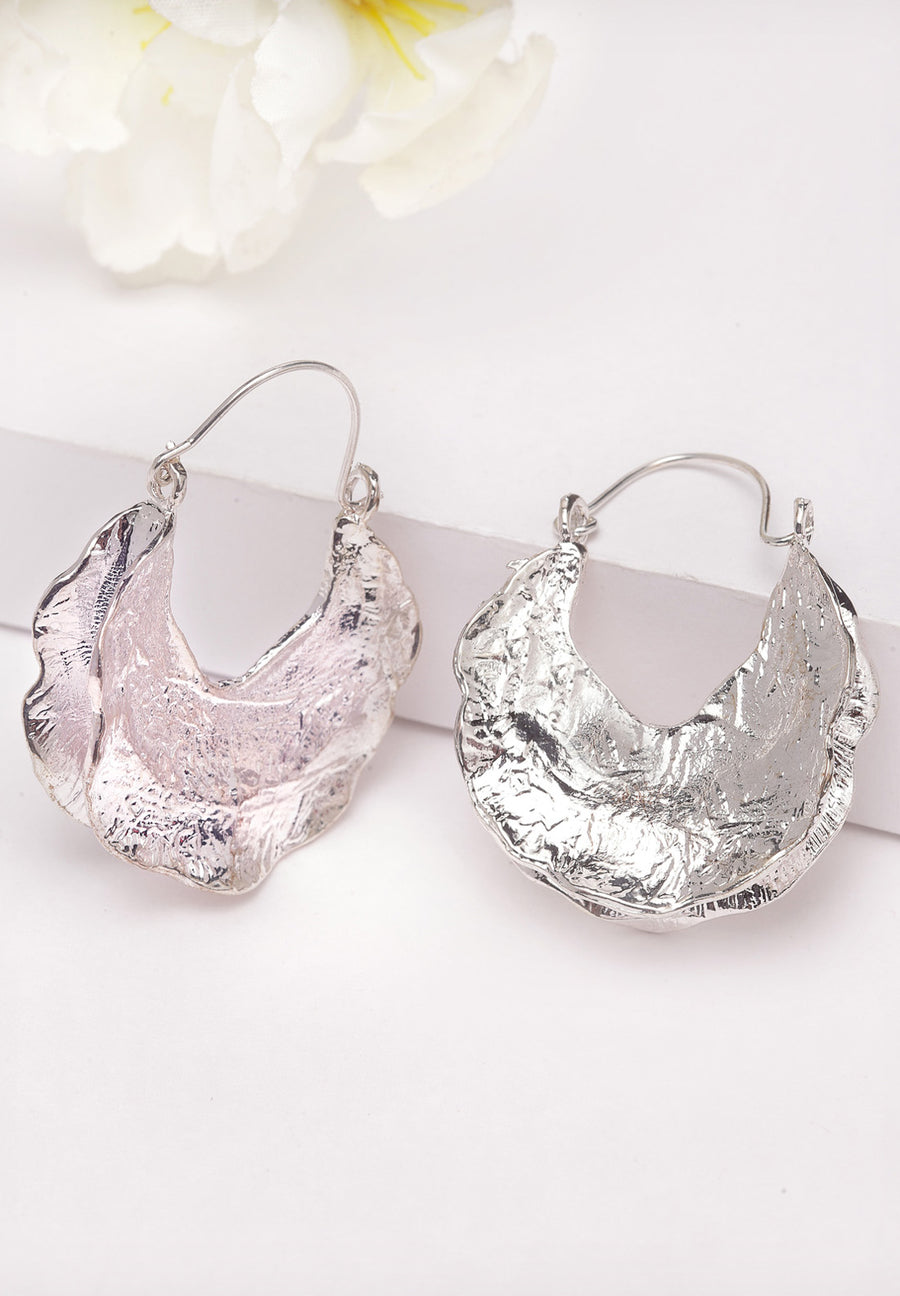 Ces boucles d'oreilles argentées ont un design élégant et épuré avec une structure délicate en forme de feuille incrustée de pierres scintillantes. Leur apparence raffinée et intemporelle les rend parfaites...