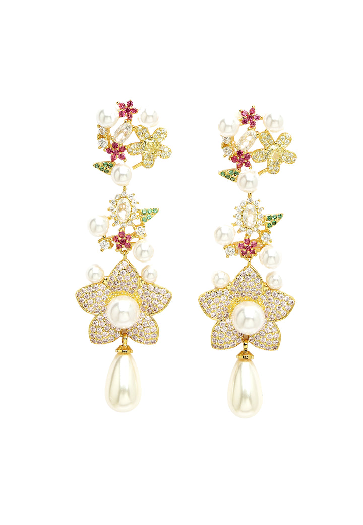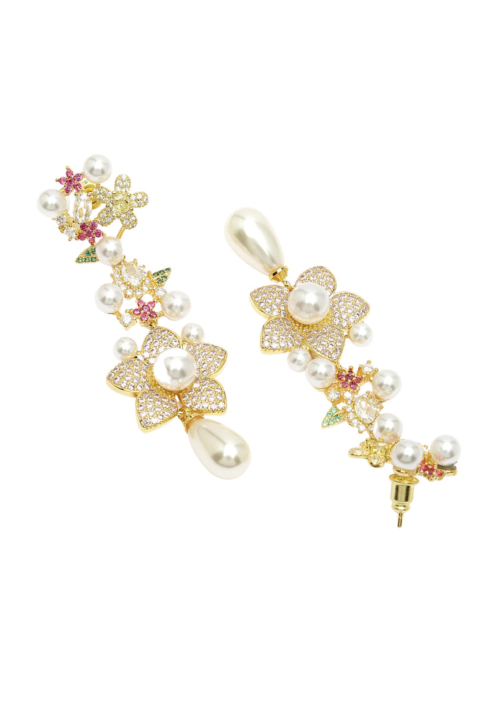 Boucles d'oreilles pendantes florales en zircone