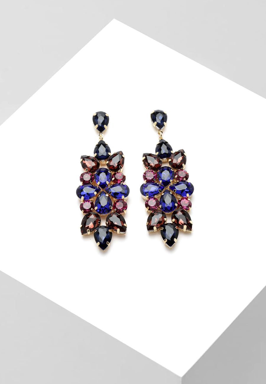 Is cineál jewelry iad cluaise titim criostail bláthanna i gorm a chomhcheanglaíonn áilleacht móitífeanna bláthanna le sparkle criostail gorm. Tá na criostail ghorm suite go straitéiseach laistigh den dearadh bláthanna,...