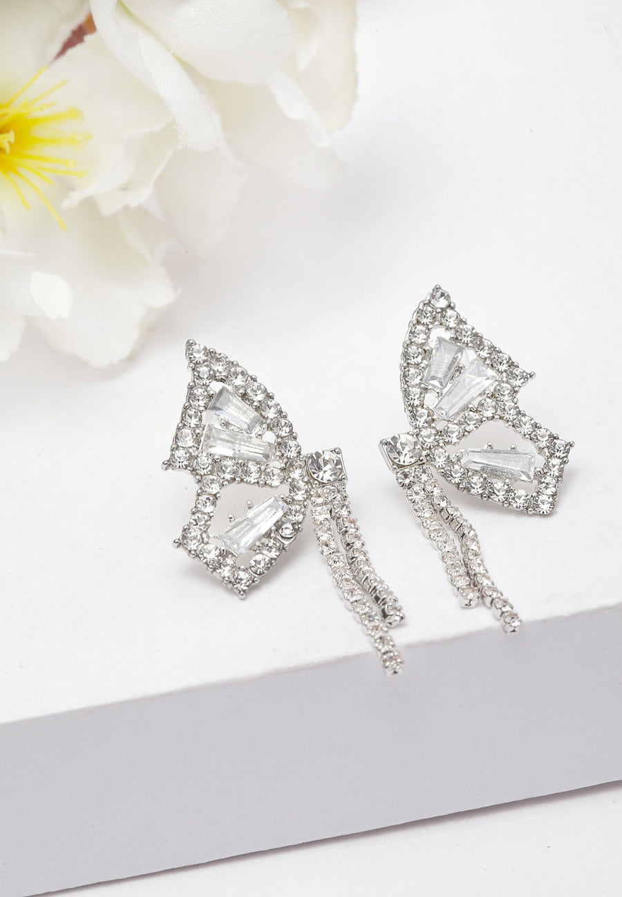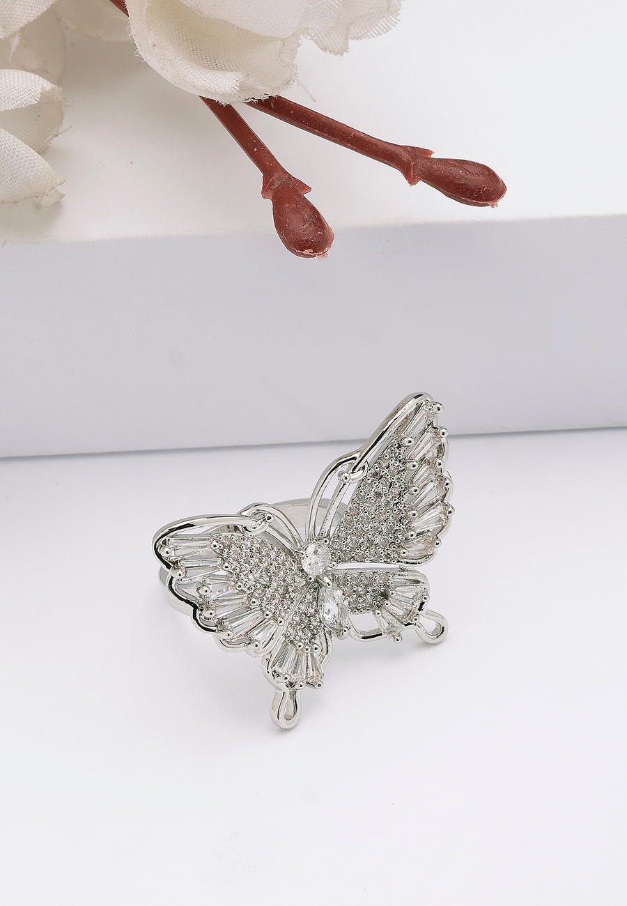 Na Fáinní Bláthanna faiseanta in airgead, maisithe le clocha glioscarnach zirconia le haghaidh teagmháil fíorálainn glamour. Cuireann na clocha zirconia sparkle radiant leis an ensemble, ag ardú do chuardach lena...