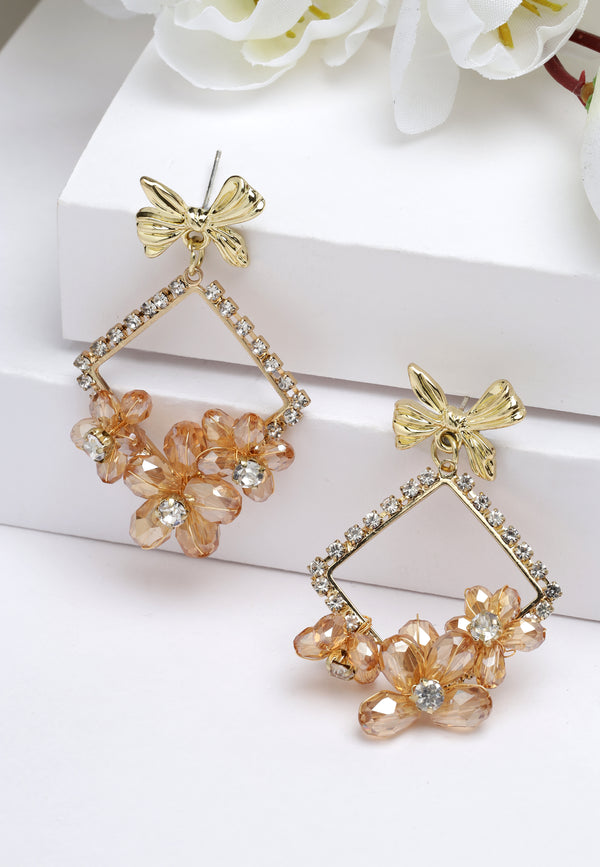Orecchini con carillon floreale in cristallo color oro