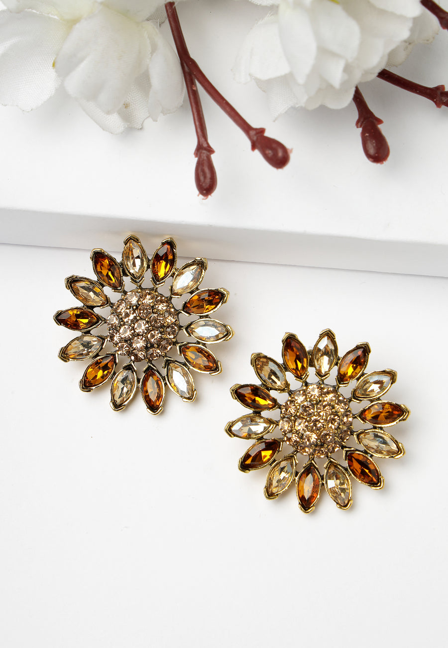 Orecchini a bottone con girasole color oro