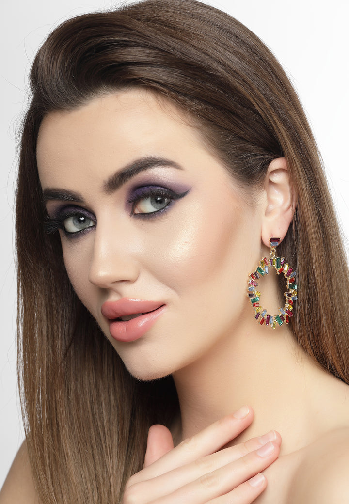 Gli orecchini pendenti in cristallo a cerchio rotondo multicolore sono un accessorio straordinario e unico che aggiungerà colore e brillantezza a qualsiasi outfit. Questi orecchini sono progettati con attenzione ai dettagli, caratterizzati da un design moderno e giocoso che farà girare la testa. Indossali con un semplice vestito o outfit nero per creare un tocco di colore e brillantezza. Indossali con un abito dai colori vivaci per completare i molteplici colori degli orecchini.