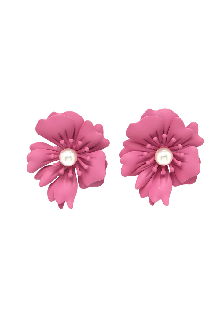 Orecchini con perle floreali in rosa scuro