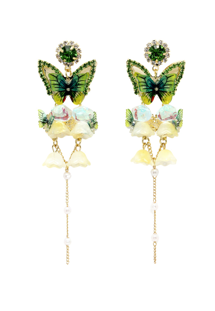 Orecchini pendenti lunghi in cristallo a farfalla
