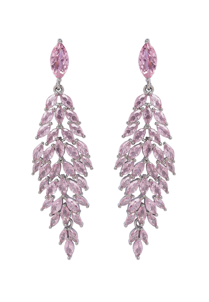 Cascaderende rijen sprankelende roze stenen creëren een betoverend watereffect, vangen het licht en werpen een stralende gloed. Ze zijn een statementstuk dat elegantie en charme uitstraalt, perfect om een vleugje romantiek en verfijning aan elke outfit toe te voegen.