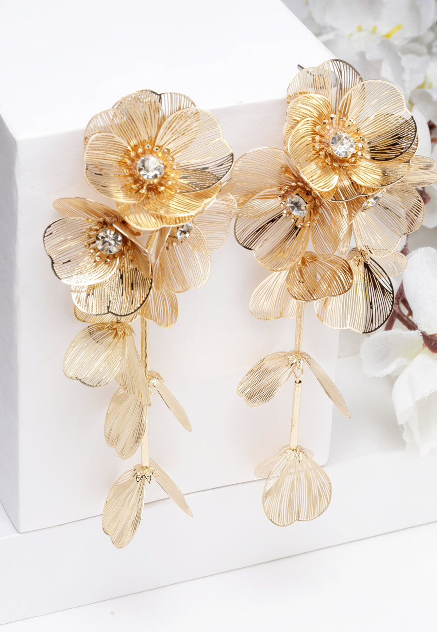 Pozłacane kolczyki z kryształowymi frędzlami i frędzlami