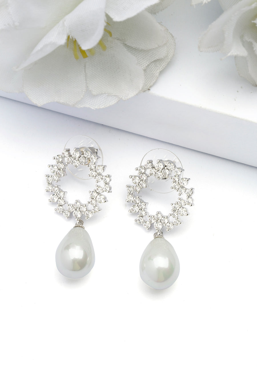 Kryształowa, okrągła aureola zwisa nad lśniącą, gruszkowatą perłą. Kontrast między błyszczącymi kryształami a delikatnym blaskiem perły tworzy wyrafinowany i przyciągający wzrok design. Rozmiar : S : 2.0 cm X W...