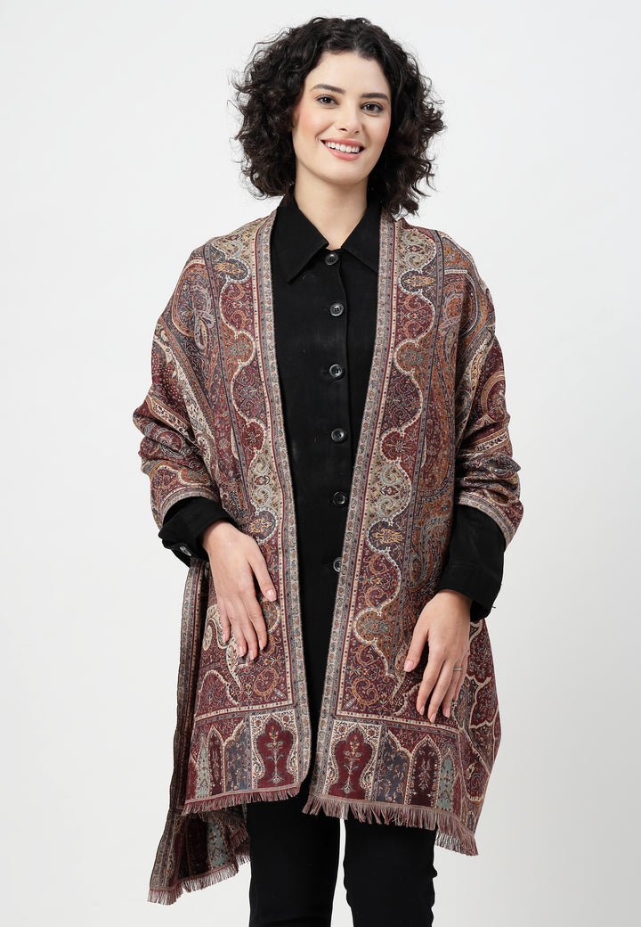 Piękne wzory Jamawar, na miękkim sztucznym pashminie i tradycyjnych dziełach sztuki. Popularne od czasów Mogołów. Ten tradycyjny szal kaszmirski ma skomplikowany wzór i wysoką jakość.