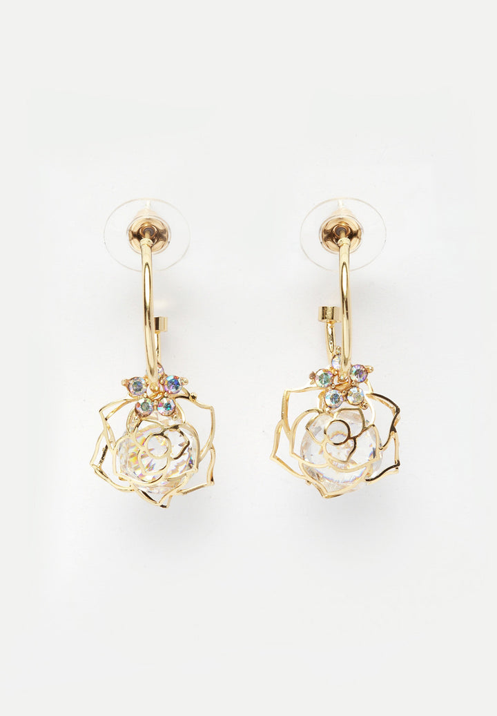 La rose en gold - Gold-plated earrings with crystals in a flower shape. Pair with formal attire or with a rose-colored dress perfect for a date night.