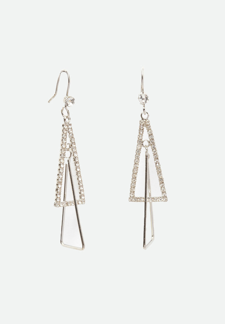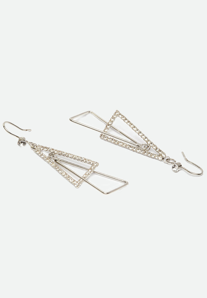Geometrical earrings are made with crystals and plated with rhodium. The triangular shape and layering gives the soiree a symmetrical and elegant look and just the right amount of sparkle. This can be paired up for a formal event to provide an elegant look.