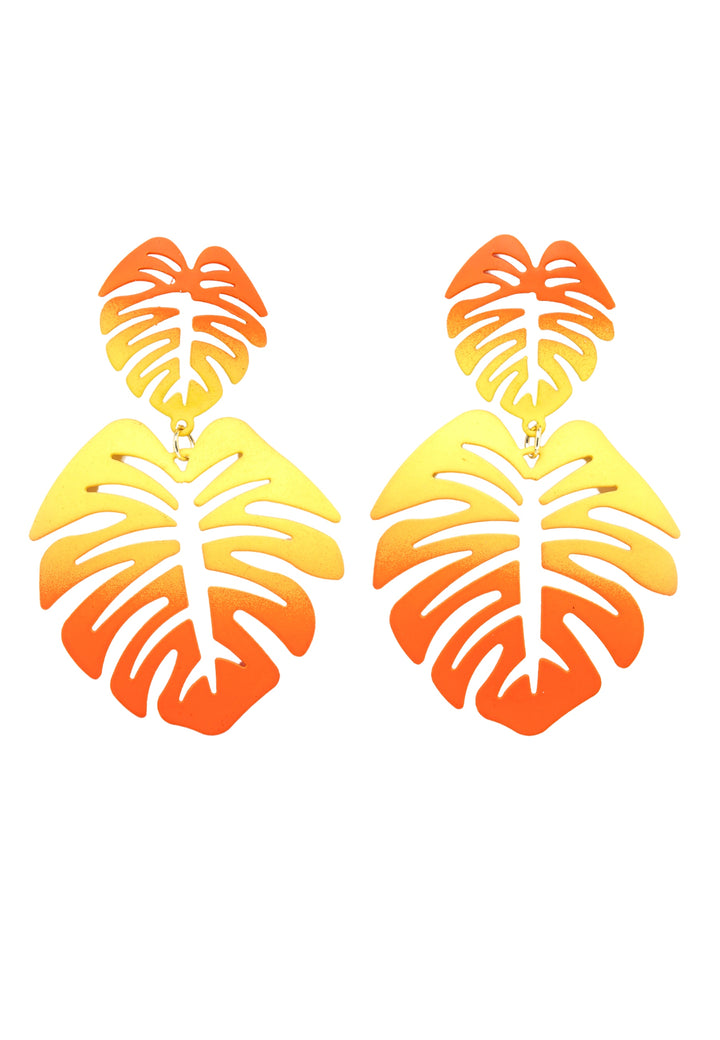 The bright orange color of the palm leaf design adds a pop of color to these earrings, making them a fun and eye-catching addition to any outfit. The earrings are made of high-quality metal. The earrings are lightweight, making them comfortable to wear all day long. These earrings can be worn with a simple t-shirt, denim shorts, or jeans for a casual yet trendy look. If you're heading to the beach, these earrings can be paired with a swimsuit and a sarong or cover-up. They can also be worn with a flowy maxi dress or a romper for a relaxed, comfortable beach look.