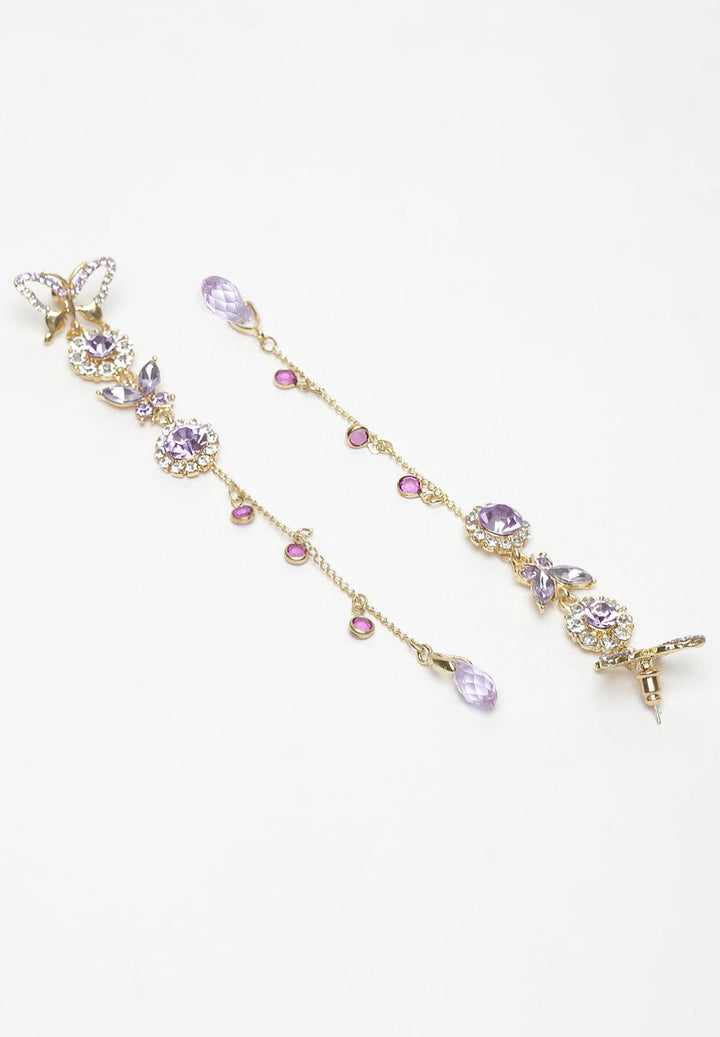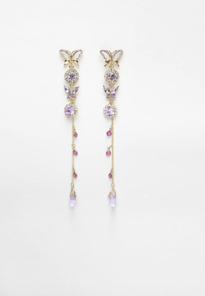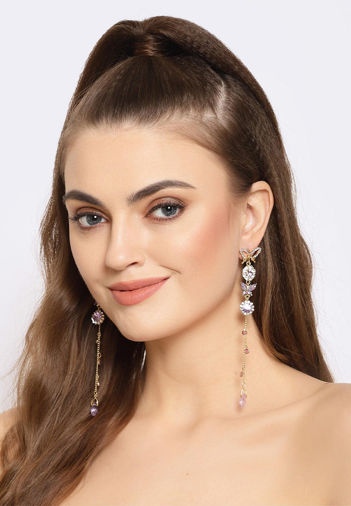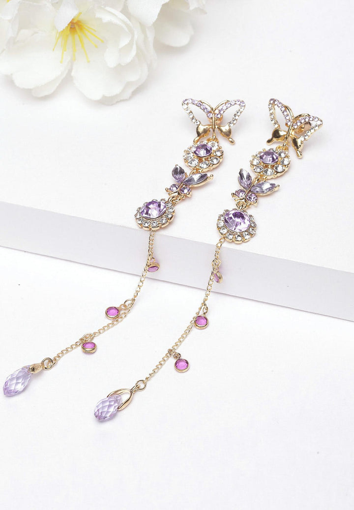 Purple Butterfly Crystal Long Hanging Earrings