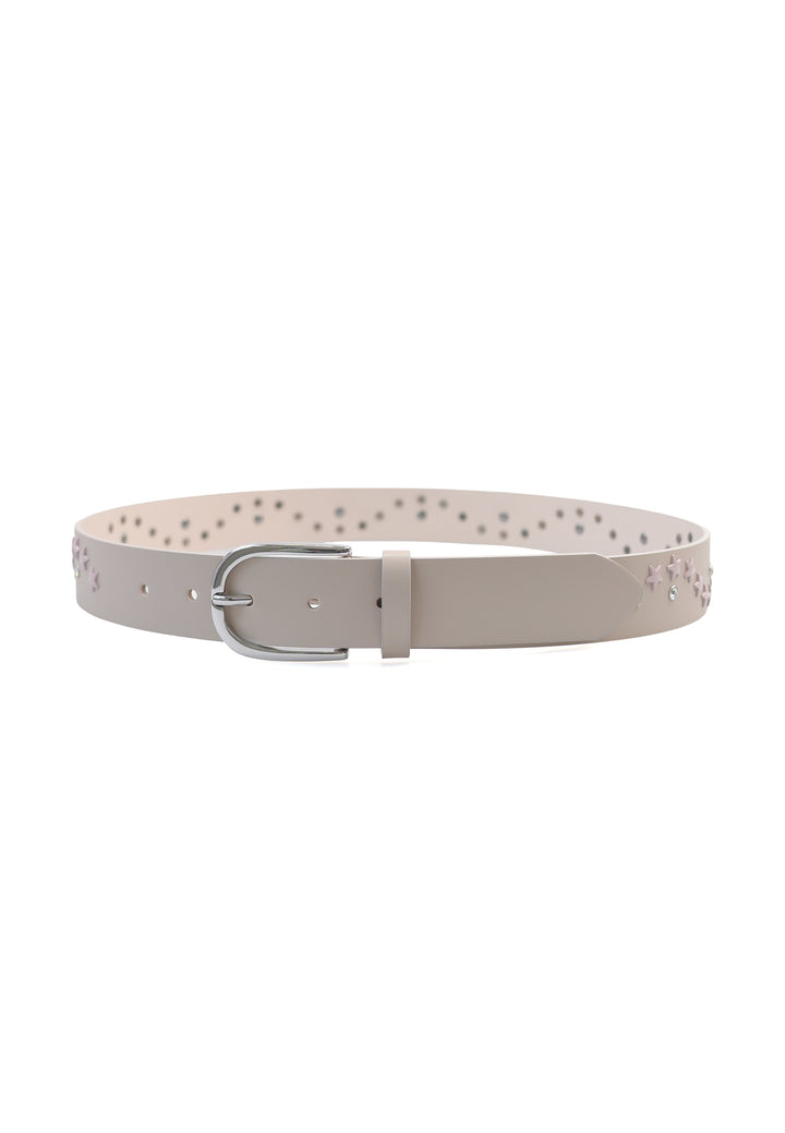 This Belt with Star Motif is a fresh and stylish accessory that adds a playful yet chic touch to any outfit. Featuring a crisp white strap adorned with a subtle star motif, this belt combines a minimalist design with a fun, celestial element. The clean beige color makes it versatile enough to pair with various outfits, while the star details provide a unique twist, adding personality and charm. The white color complements bright, summery tones, while the star motif gives the outfit a dreamy, playful feel, perfect for outdoor events or a sunny day out.