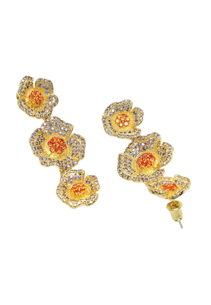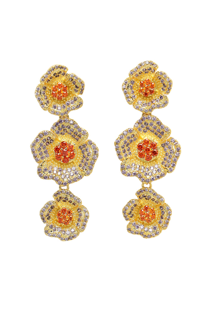 Cubic Zirconia Triple Flower Dangle Earrings