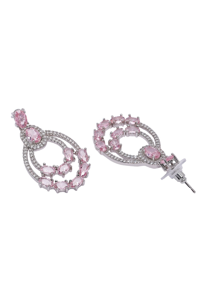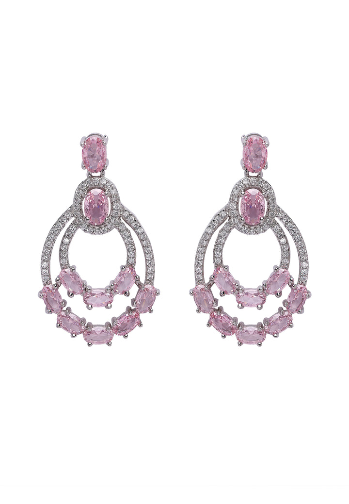 The Diva Double Layered Danglers in pink cubic zirconia is a captivating blend of elegance and modern style from the Diva Collection. The high-quality cubic zirconia mimics the look and brilliance of genuine gemstones, offering an affordable yet luxurious alternative. The pink hue of the stones adds a feminine and romantic touch, making these earrings suitable for various occasions, from casual outings to formal events. These earrings are not just accessories; they are a statement piece that celebrates beauty, color, and sophistication.