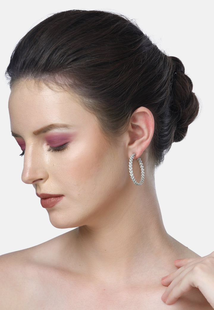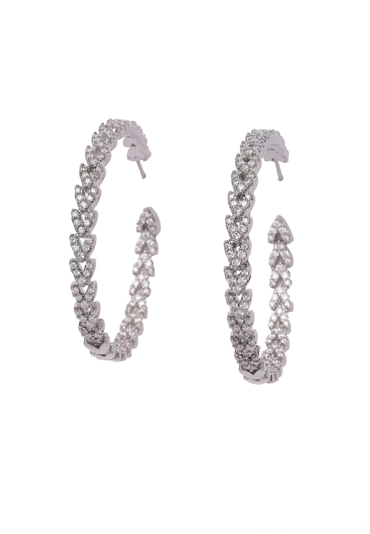 The Diva Twinkling Small Hoops from the Diva Collection are a perfect blend of subtle elegance and contemporary style. These hoops, crafted in a sleek silver color are from the diva collection. Each hoop is adorned with meticulously set cubic zirconia stones, which catch and reflect light beautifully. Whether paired with a casual ensemble or a more formal attire, these earrings add a touch of elegance and sparkle.
