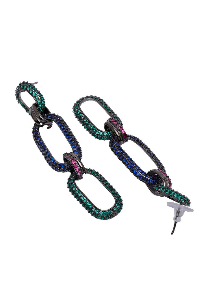 The Diva Dangle Drop Oval Hoops from the Diva Collection embodies elegance and contemporary style. These exquisite earrings are adorned with multicolor cubic zirconia stones, each selected for its vibrant hue and brilliant sparkle. Designed with a unique combination of dangle and hoop elements, these earrings offer a modern twist on a classic style. Whether you're dressing up for a special occasion or adding a bit of sparkle to your everyday look, the Diva Dangle Drop Oval Hoops are a perfect choice.