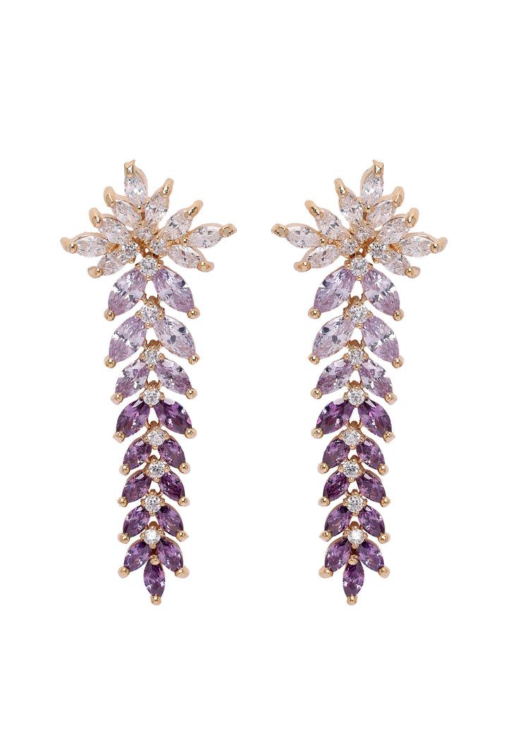 The Diva Floral Dangle Earrings from the Diva Collection are a stunning representation of nature-inspired elegance and vibrant design. These exquisite earrings are adorned with multicolor cubic zirconia stones featuring mesmerizing blue and purple hues. These earrings are perfect for various occasions, from formal events to casual outings. The combination of blue and purple hues with the golden flower makes them a versatile accessory that can complement a wide range of outfits. These earrings are a standout accessory that offers both beauty and versatility.