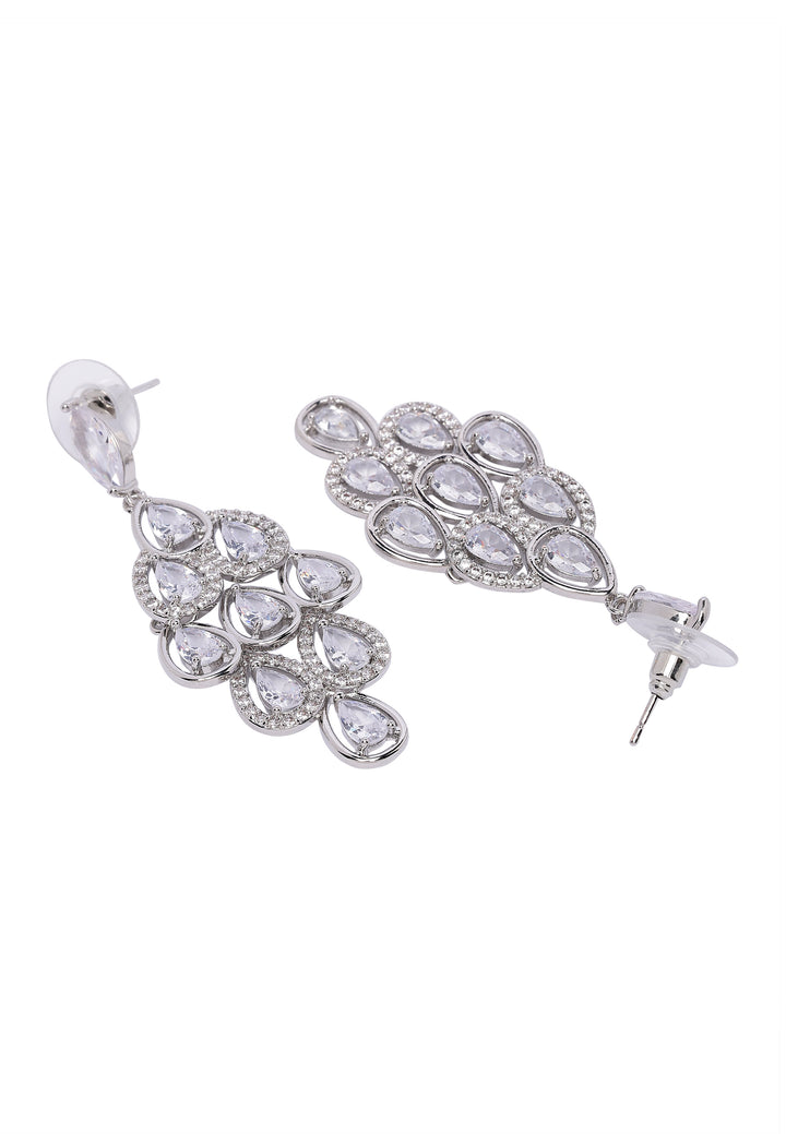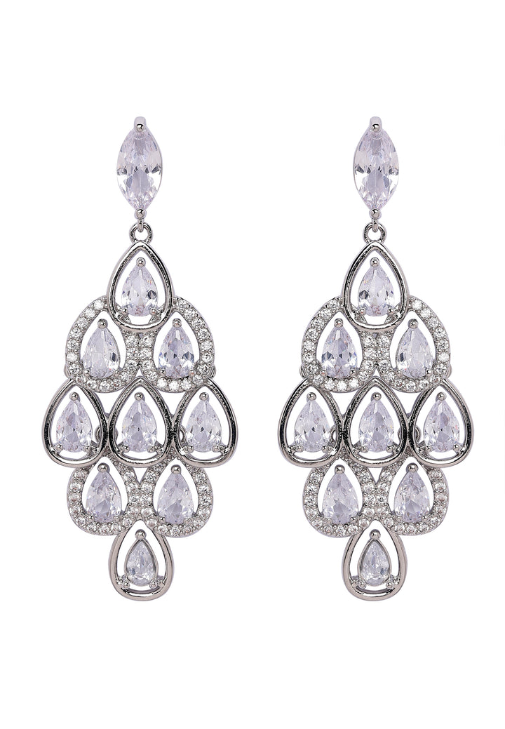 These elegant drop earrings feature a cascading arrangement of sparkling stones, creating a mesmerizing waterfall effect. They are a perfect blend of sophistication and sparkle, adding a soft look of glamour