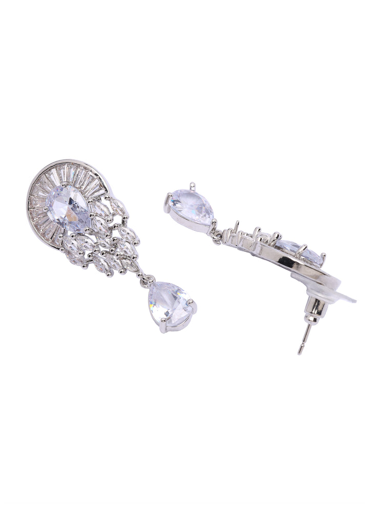 These earrings are a true vision of elegance and allure! With finely detailed designs, they are embellished with a cascade of radiant stones that shimmer and shine. The teardrop shapes bring an added sense of sophistication and graceful motion, making them a bold and memorable statement. Ideal for enhancing any outfit with a hint of glamour.