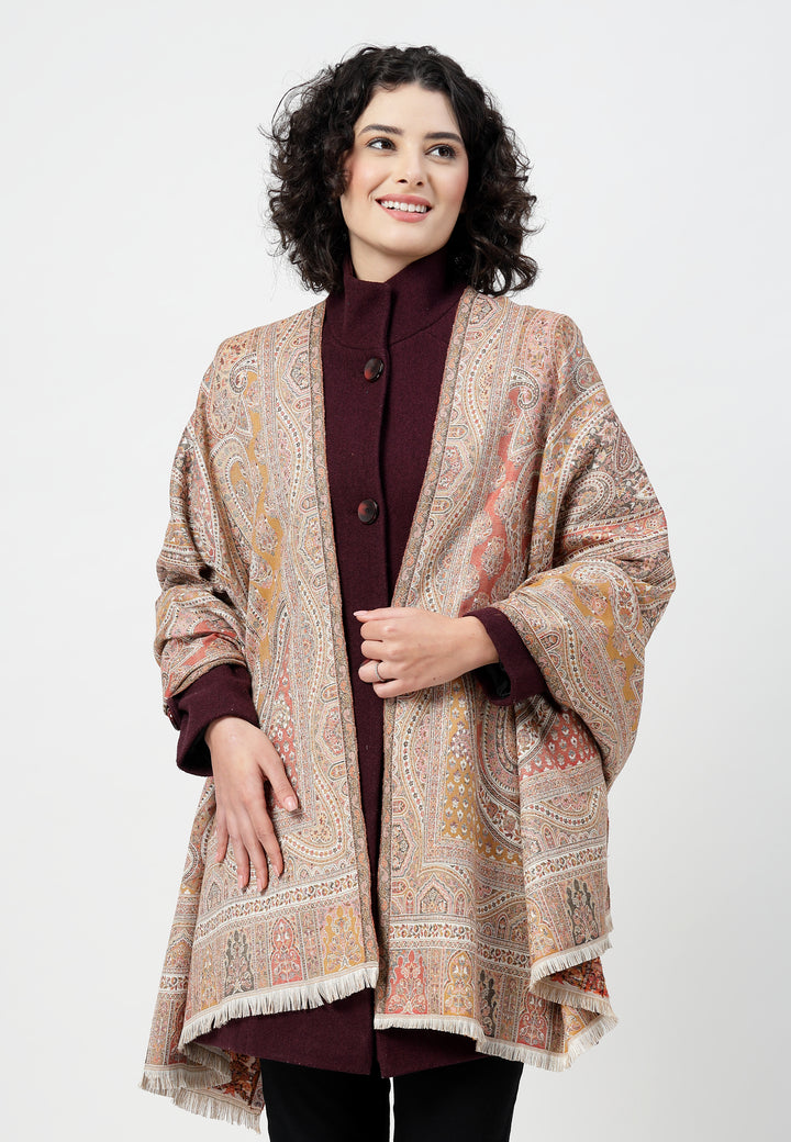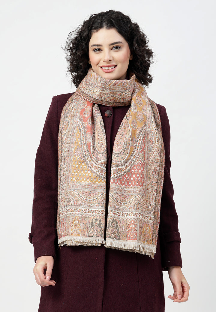 Beautiful Jamawar designs, on a soft faux pashmina fabric and traditional artwork. Popular since the Mughal era. This traditional Kashmiri style stole has intricated design and quality.