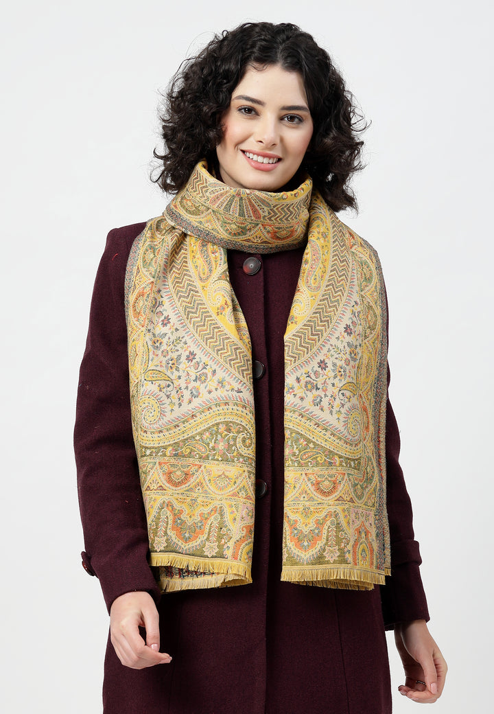 Beautiful Jamawar designs, on a soft faux pashmina fabric and traditional artwork. Popular since the Mughal era. This traditional Kashmiri style stole has intricated design and quality.