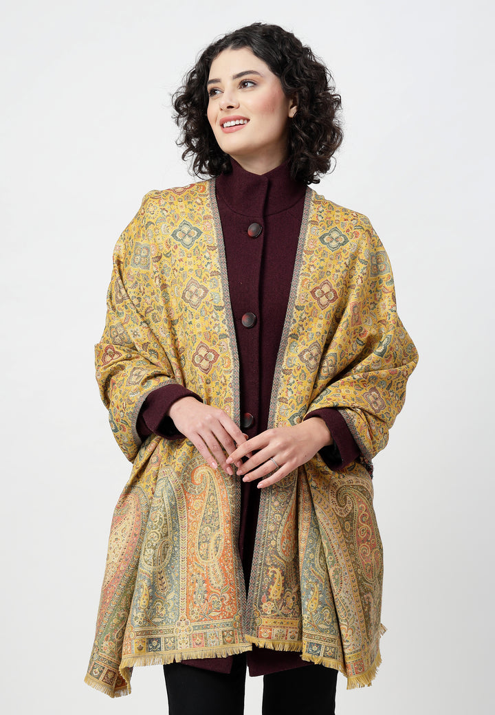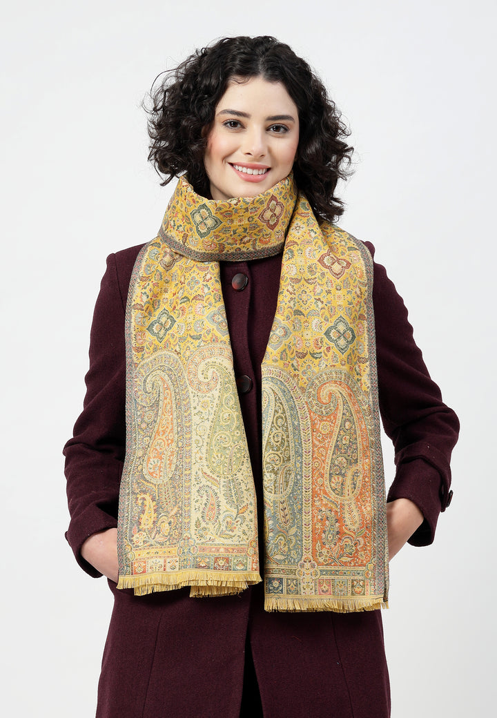 Beautiful Jamawar designs, on a soft faux pashmina fabric and traditional artwork. Popular since the Mughal era. This traditional Kashmiri style stole has intricated design and quality.