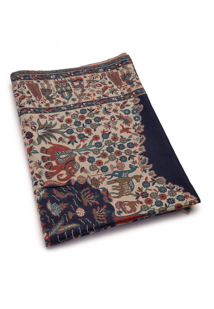 Beautiful Jamawar designs, on a soft faux pashmina fabric and traditional artwork. Popular since the Mughal era. This traditional Kashmiri style stole has intricated design and quality.