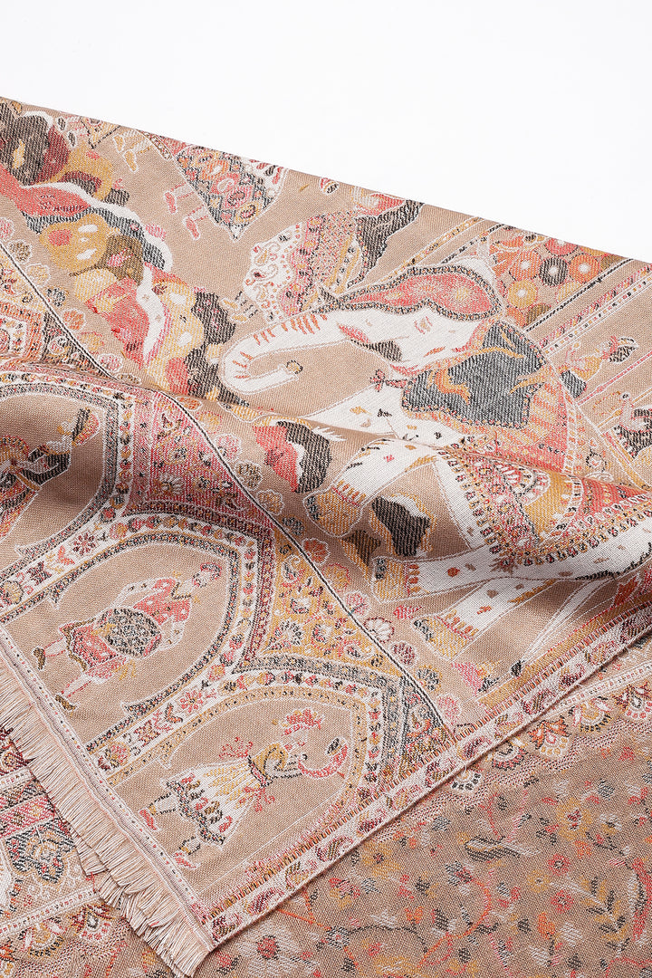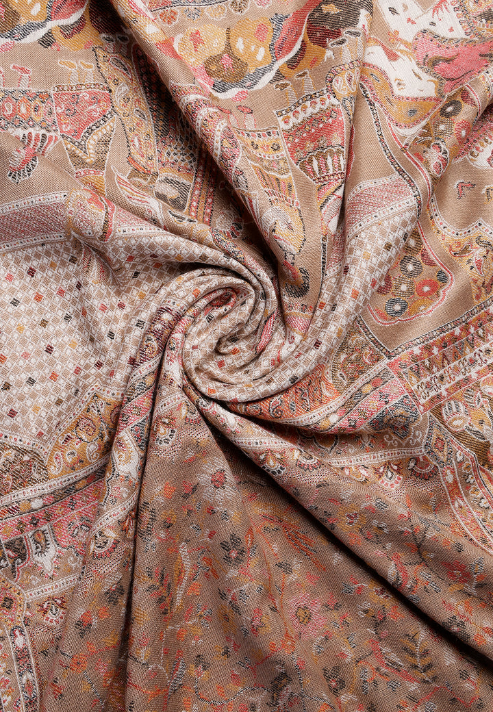 Beautiful Jamawar designs, on a soft faux pashmina fabric and traditional artwork. Popular since the Mughal era. This traditional Kashmiri style stole has intricated design and quality.