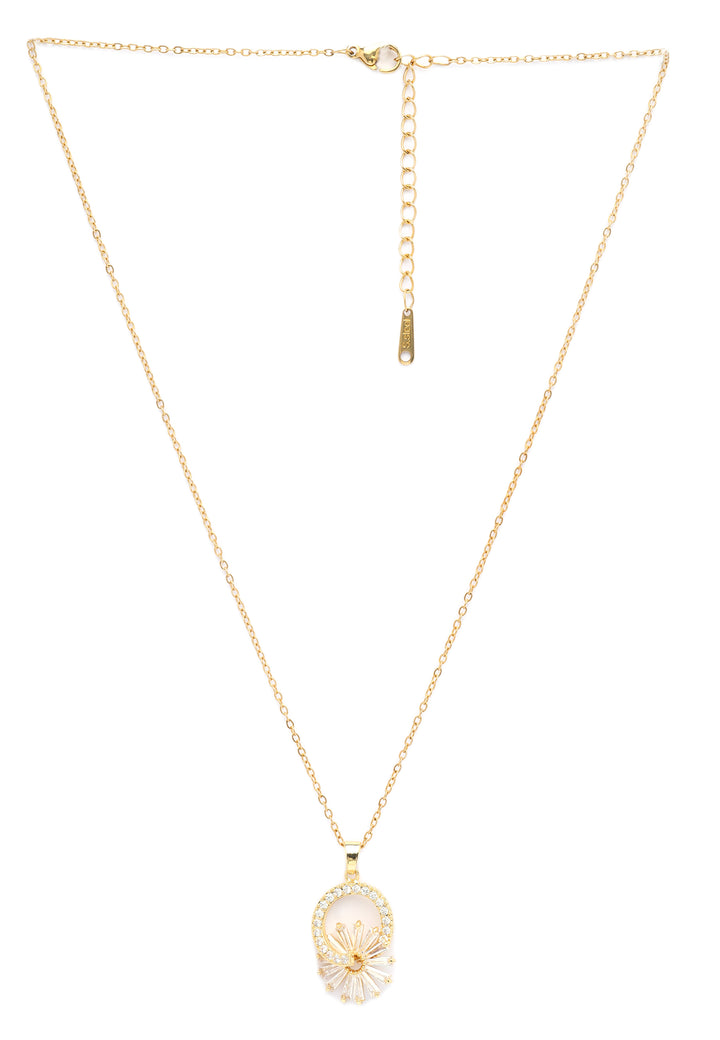 Stråla av charm och sofistikering med detta bländande halsband. Halsbandet har en fantastisk cirkulär design prydd med glittrande stenar, som omger ett fängslande solstrålemotiv som utstrålar värme och briljans. Den gyllene finishen ger en lyxig touch, vilket gör detta set till det perfekta valet för både speciella tillfällen och vardaglig glamour. Oavsett om du går ut på ett kvällsevenemang eller lägger till en lysande accent till din dagliga outfit, kommer detta halsband att säkerställa att du strålar med tidlös elegans.